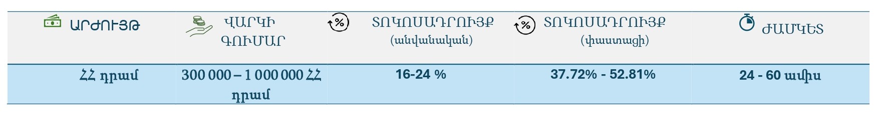 ✅ Գրավի պահանջ չկա, ինչի շնորհիվ վարկը հասանելի է ավելի լայն շրջանի համար